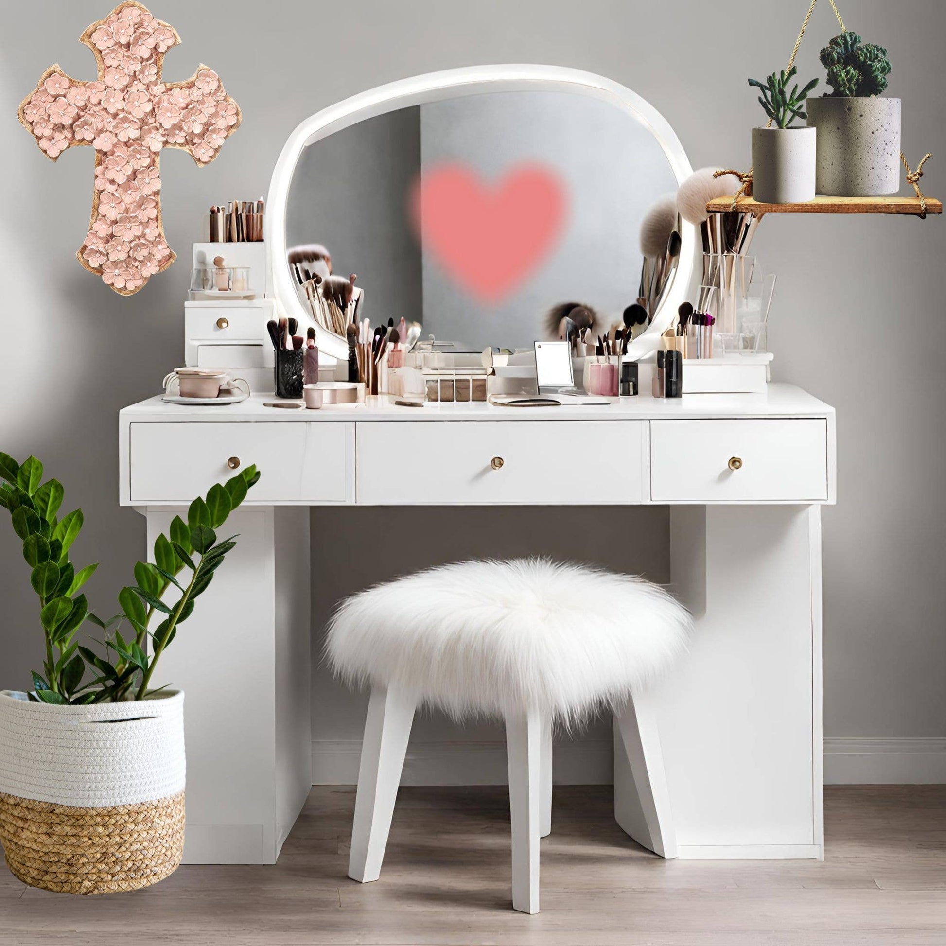 Floral bloom wall cross 11.5" a vibrant coral pink pastel shower of raised blossoms adorns this wall cross. Each bloom is carefully sculpted in resin with exquisite detail. Background is also resin with the look of vintage wood. Beautiful gift for a mother, grandmother, sister, aunt, or friend. Cross is 11 1/2" high and 9" wide, with a total approximate depth of 1 1/2". Sawtooth hanger on back.
