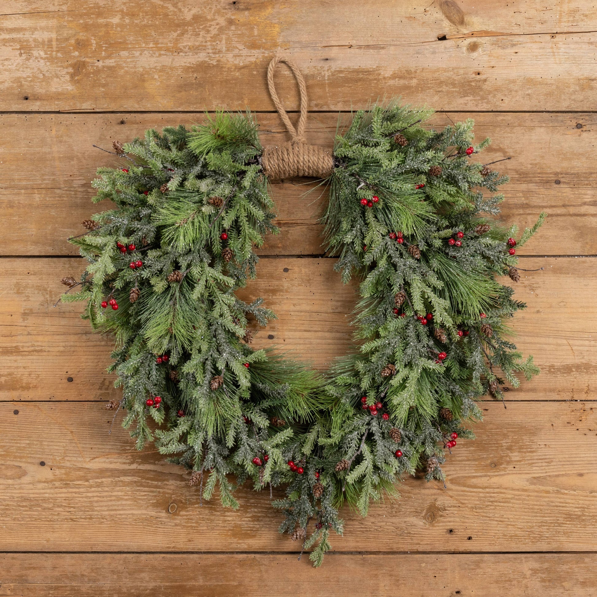 Adorn your space with Ragon House's 30" Glittered Pine & Red Berry Hanging Wreath. This striking wreath combines the sparkle of glittered pine with the vibrant pop of red berries, creating a festive decor piece that's sure to catch the eye. Ideal for both indoor and outdoor use, it beautifully complements any setting from your living room to your garden. Made with our commitment to quality, this piece is not just a decor, but a reflection of our dedication to bringing warmth and joy into your home.