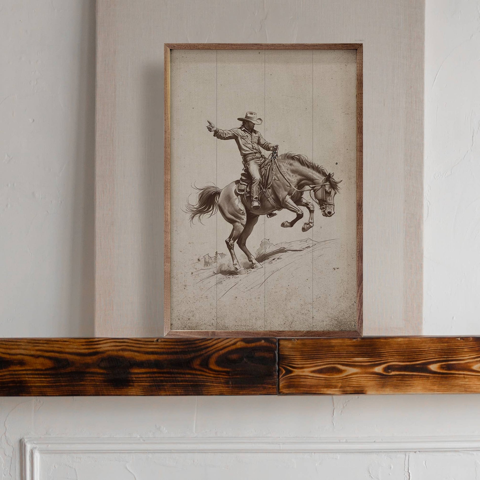 Featuring a solid wood insert with intricate, rustic western designs, this piece is framed in rich walnut to showcase the natural wood grain. With its rugged yet elegant craftsmanship, it’s a standout addition to any home décor collection, offering timeless style and quality.