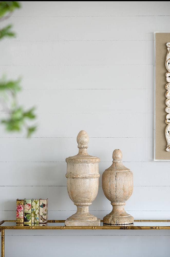With a whitewashed wood look, the medium-sized Chester Finial Decorative Accent offers beautiful detailing when used inside or outdoors. Place atop a garden post, as a striking addition to a living room mantle, or to give an elegant finish to a staircase. The Chester Finial gives a classic, timeworn feel while its durable construction ensures years of enjoyment.