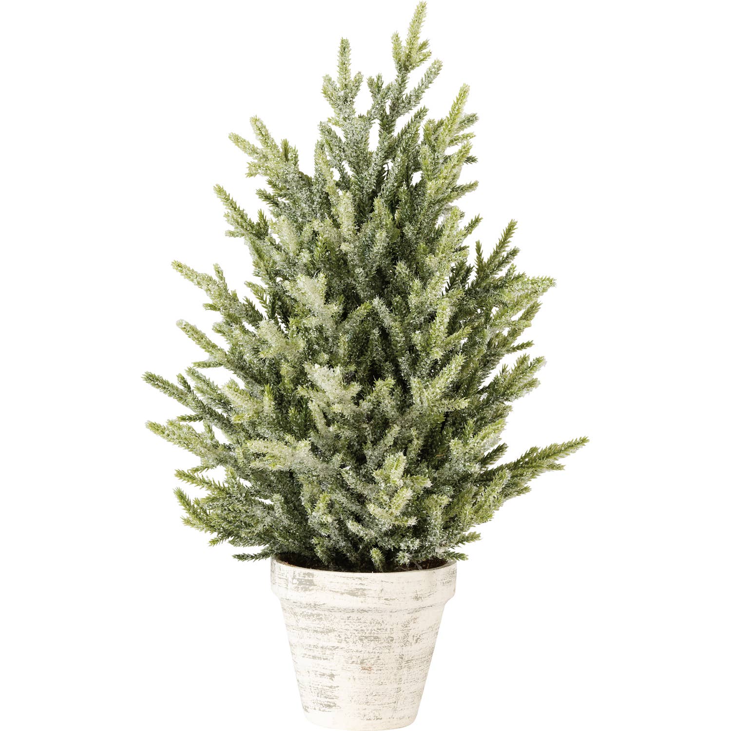 A standing bristle tree featuring glitter accents for an icy effect. 16" tall with a flower pot base.