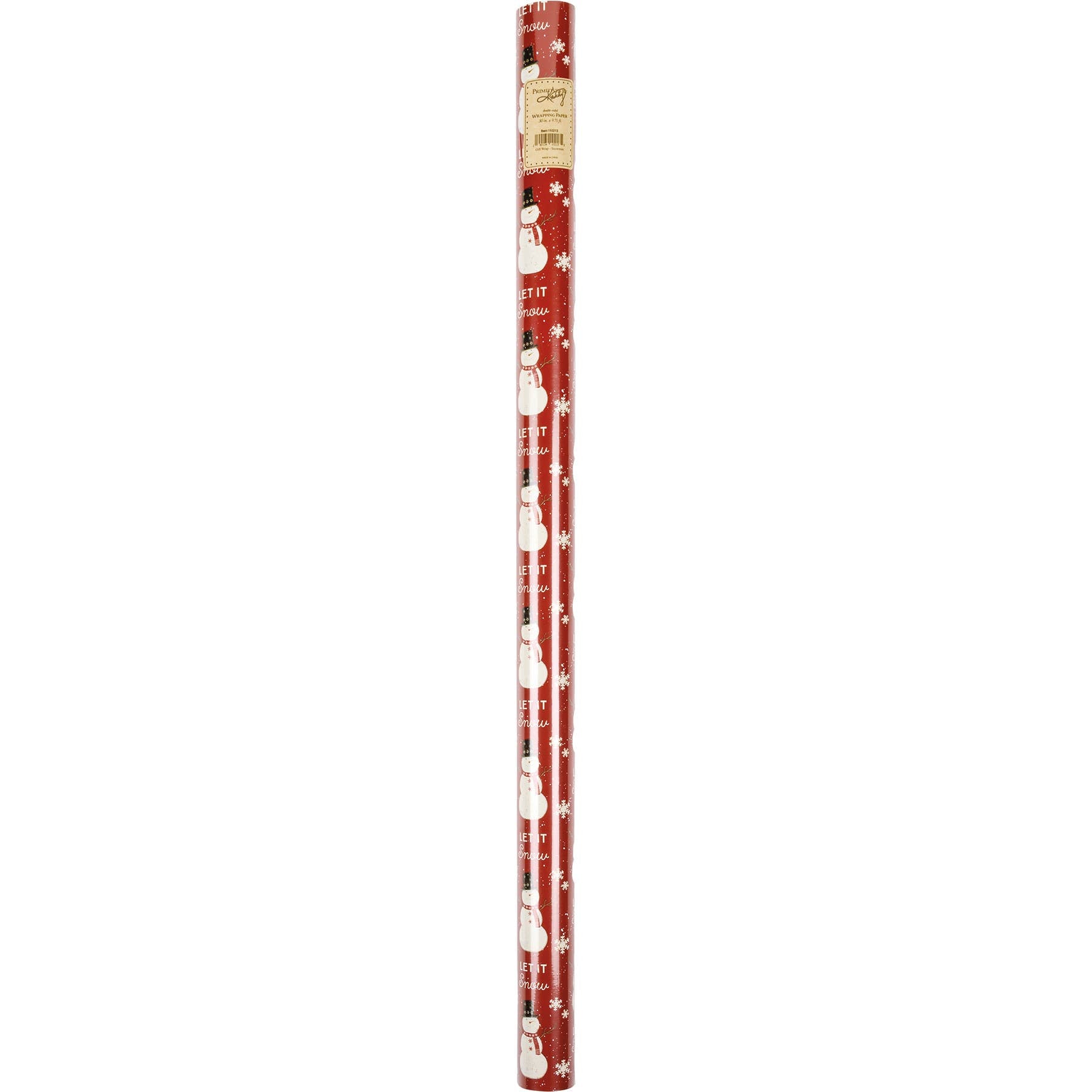 A roll of double-sided gift wrap from our Christmas Collection features a holiday-inspired snowman design with "Let It Snow" sentiment. Our Snowman gift wrap roll is 9.75' long ( 3.3 yards).