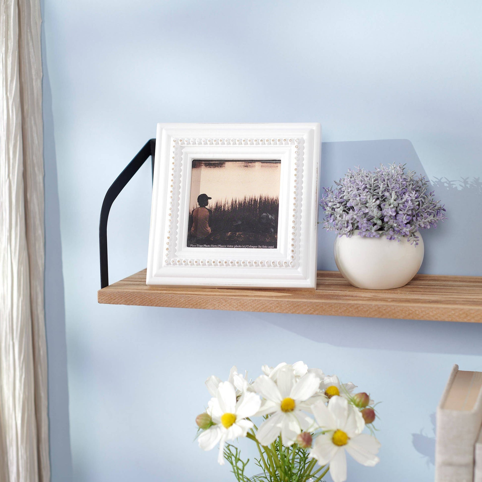 A decorative photo frame from our Beach Collection featuring cream color wood and textured beaded designs along a square frame with distressed details for a naturally aged aesthetic. Rustic photo frame fits a 4 inch by 4 inch photo and can easily be replaced via clips on back. Our Square Beaded photo frame is easy to hang for display via attached hanger or use the attached easel to free-stand. A rustic photo frame perfect for displaying favorite memories as everyday home décor.