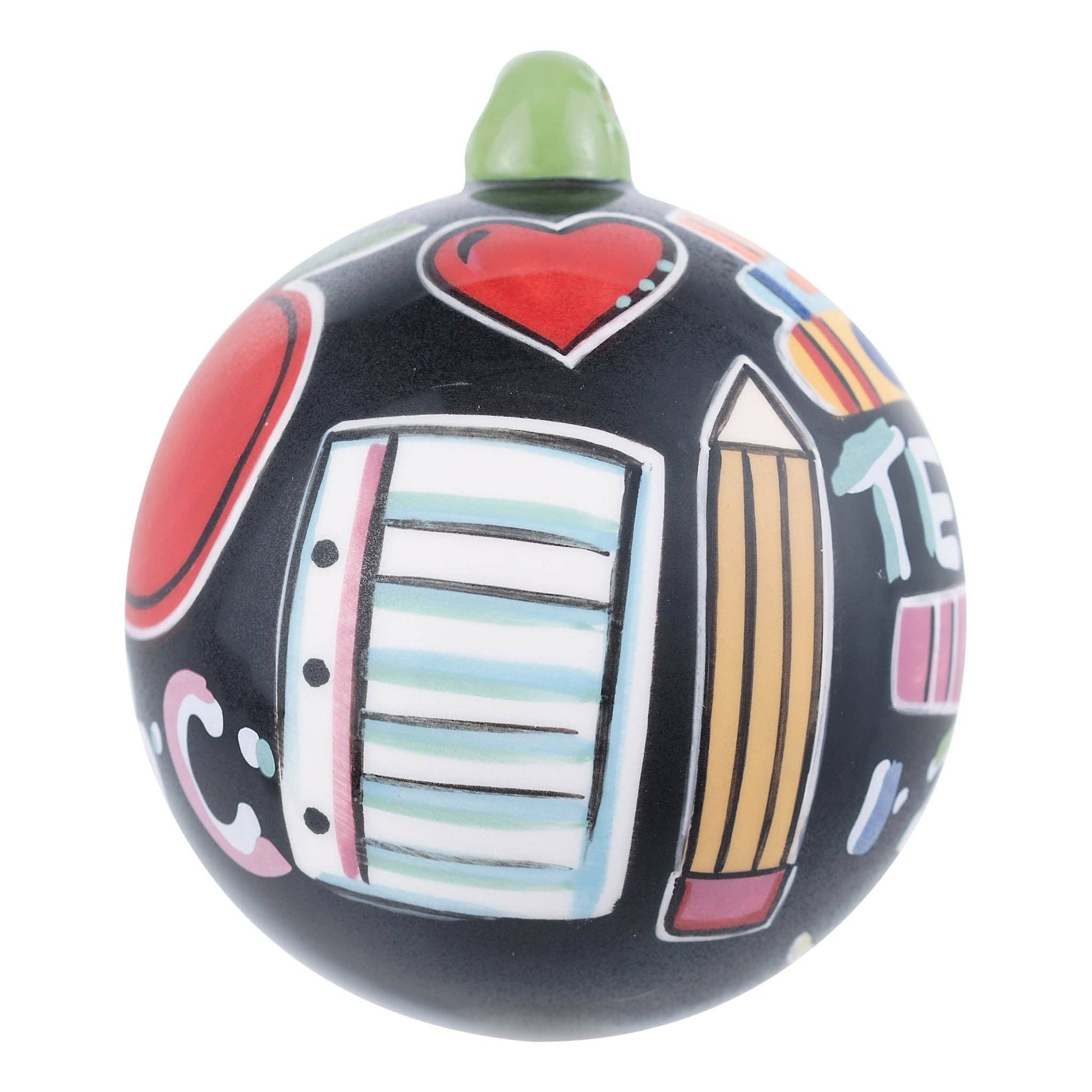 This colorful ball ornament is a perfect tribute to teachers! It features fun, vibrant designs including pencils, ABCs, 123s, an apple, crayons, and the word "Teach." With its playful and educational theme, this ornament celebrates the dedication and hard work of educators. Crafted with attention to detail, it adds a cheerful and inspiring touch to your holiday décor. Ideal for teachers or as a gift for anyone in the education field, this ornament is a delightful way to show appreciation during the holiday season.